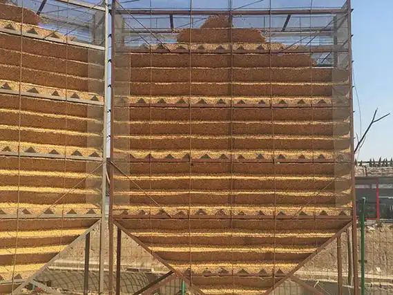 2.立體化暴曬。網(wǎng)片將傳統(tǒng)平面暴曬轉(zhuǎn)化為立體空間使用,糧食在多層網(wǎng)箱中活動,顯著節(jié)約占地面積。例如,天然風干糧倉通過倒三角形倉體和20余層隔層,完結(jié)單倉13-17噸的容量。